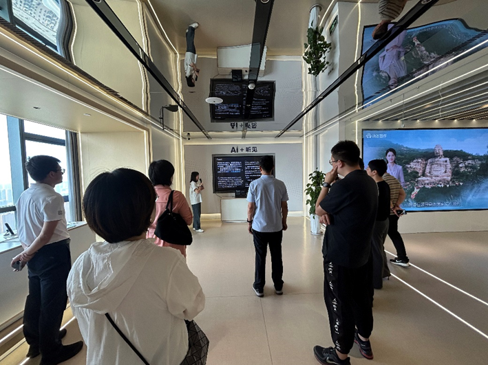 智汇展厅共探新篇。学院教师团率先走进科大讯飞人工智能展厅,开启了一场科技与创新的沉浸式体验之旅。展厅内,前沿科技成果琳琅满目,教师们近距离感受了科大讯飞AI语音识别技术如何突破语言沟通障碍,见证智慧教育平台如何实现个性化学习,领略工业智能系统怎样赋能生产流程优化升级。在智慧教育展区和医疗展区,科大讯飞研发的 AI 辅助教育学习平台和 AI 辅助医疗诊断系统成为关注焦点。