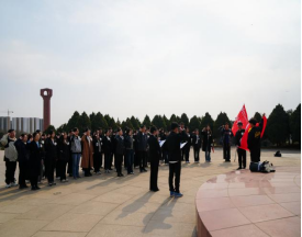 学生代表程晨豫向革命英烈徐向前同志的陵墓敬献了鲜花。无限的哀思,化作坚定的信念。美好的心愿,编织成洁白的花环。全体同学在纪念碑前重温入团誓词,并庄严宣誓。字字句句铿锵有力,洪亮的声音以示当代青年继承烈士遗志、积极进取、奋力拼搏的决心。